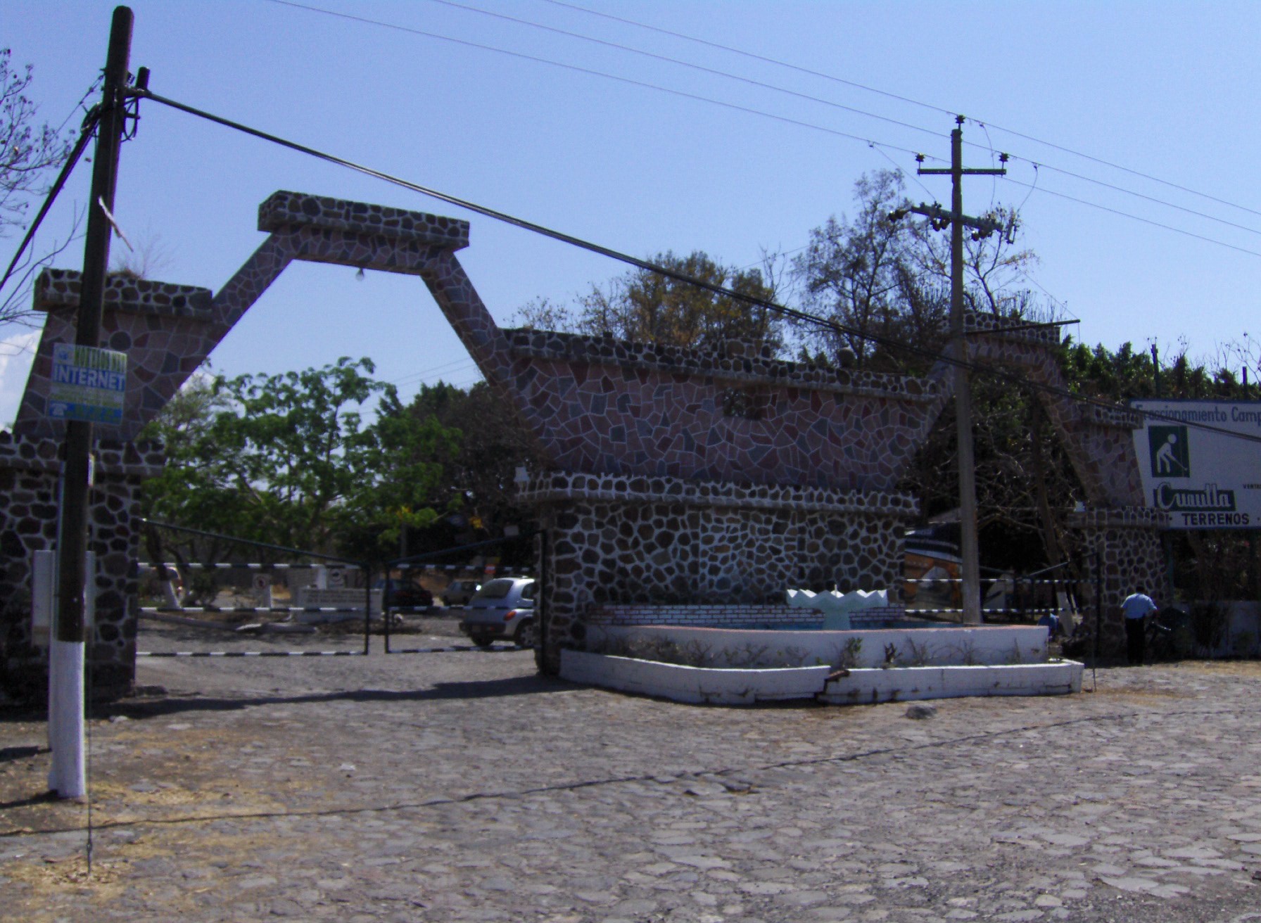 FACHADA DE ACCESO AL FRACCIONAMIENTO CON LA CONSTRUCCIÓN DE DOS ARCOS MAYAS.