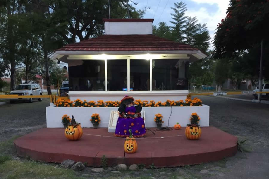 CASETA DIGNA PARA LOS VIGILANTES , CON ARREGLO FLORAL DE ACUERDO A LA ÉPOCA.